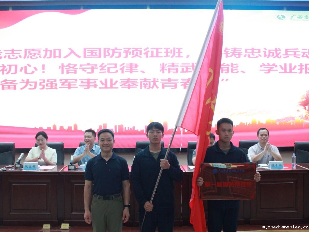 随后,举行学校首届国防预征班授旗授牌仪式。学校党委书记陈湘如为预征班授旗授牌。全体学员在班委带领下,紧握右拳,以铿锵誓言郑重承诺:“熔铸忠诚兵魂,砥砺报国初心!恪守纪律、精武强能、学业报国,时刻准备为强军事业奉献青春!”
